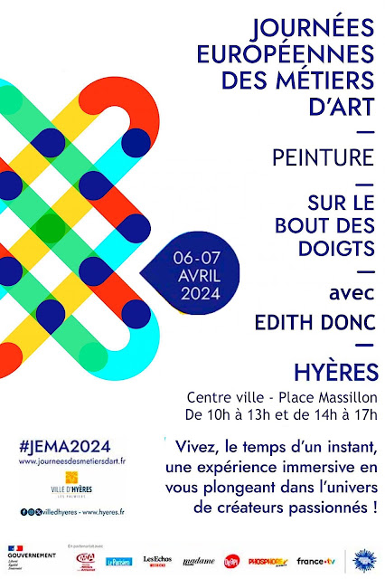 #JEMA 2024 – Peinture – Sur le bout des doigts avec Edith Donc 26/03/2024 Auteur : edithdonc Catégories : Non classé Tags : edith donc, Hyères, JEMA 2024, Journées européennes des métiers d'art, Peintures