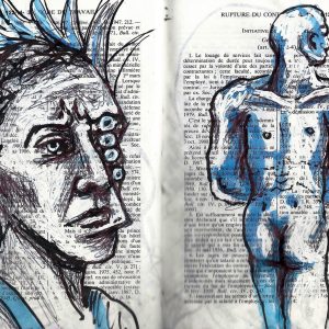 Image correct à venir! Dessin au stylo bille sur différents papiers, avec collage de dessins de culottes sur des papiers calques, gauffrés, pq et autres matières. Réalisé pour l'exposition "28 nuances de blancs", galerie des arts place Massillon à Hyères.
