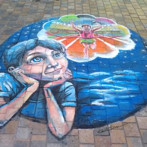 Démontration Street painting pour le parcours des arts en fête 2024